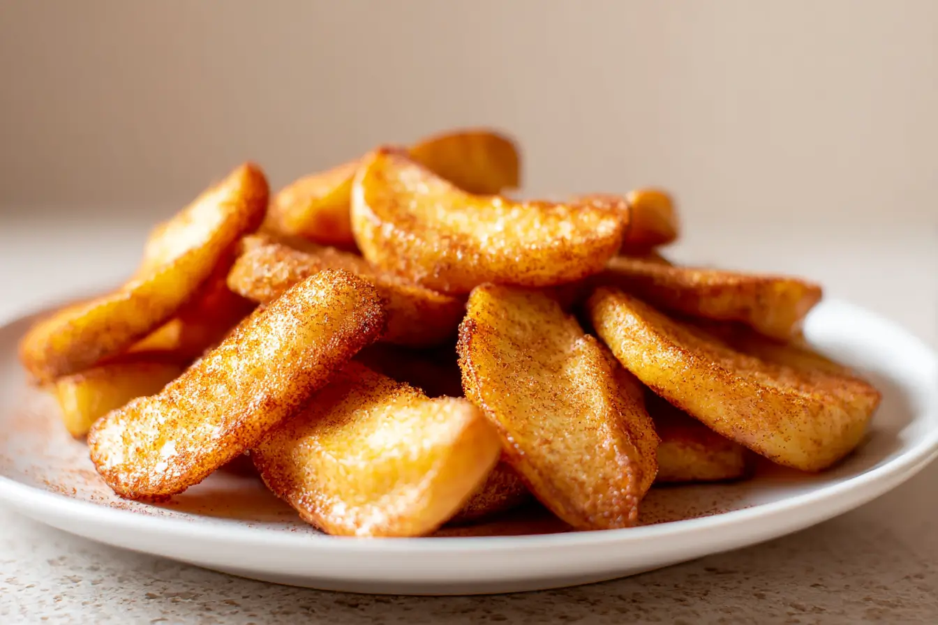 Sobald die Äpfel goldbraun und knusprig sind, nehme ich sie heraus und lasse sie kurz abkühlen. Dann serviere ich sie warm, vielleicht mit etwas Vanilleeis für einen besonderen Leckerbissen.